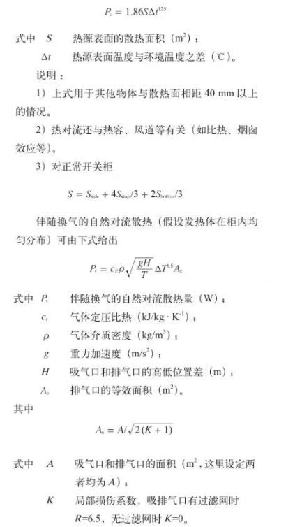 (2)熱對(duì)流是物體表面與相接觸的流體間有溫差時(shí)呈現(xiàn)的傳熱現(xiàn)象。柜體表面、氣箱表面或熱源表面的天然對(duì)流散熱可用下式預(yù)算
